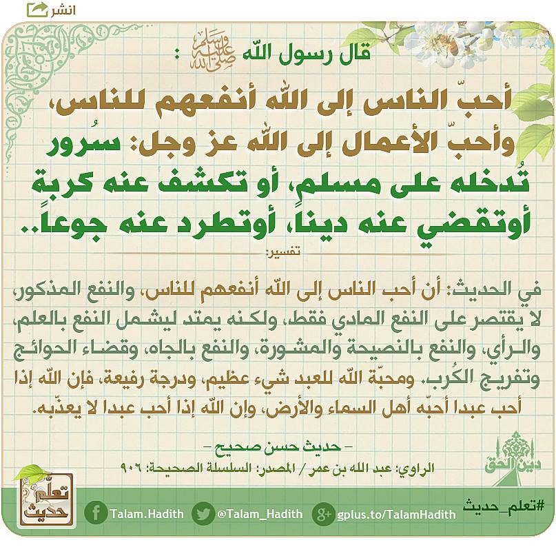 حكم ومواعظ استوقفتني أحب الأعمال ألى الله سرور تدخله على مسلم