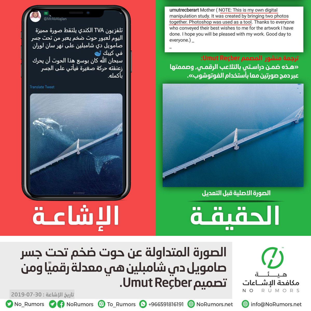 فالصو بيقولك دى صورة حوت وابنه تحت جسر فى كندا طلعت الحيتان فوتوشوب والكوبرى بأمريكا