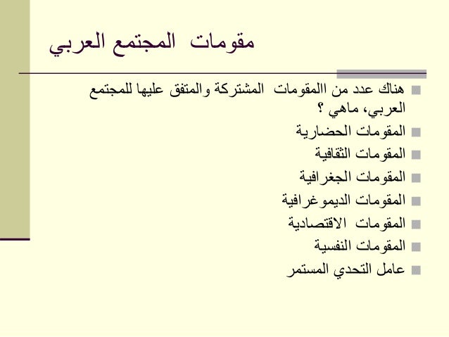 المجتمع العربي المعاصر المقومات السمات المشكلات والمظاهر الحضارية