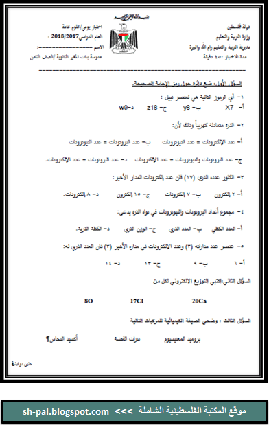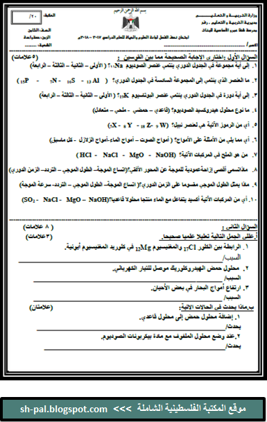 امتحان نصف الفصل الثاني في العلوم للصف الثامن المكتبة الفلسطينية الشاملة