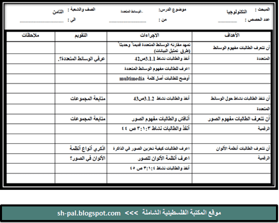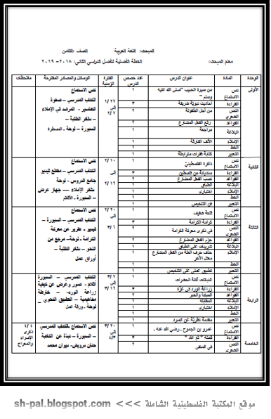 خطة لغة عربية للصف الثامن الفصل الثاني المكتبة الفلسطينية الشاملة