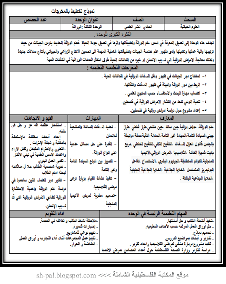 تحضير الوحدة الثالثة في العلوم الحياتية للصف الحادي عشر الفصل الثاني وفق النظام الجديد المخرجات المكتبة الفلسطينية الشاملة