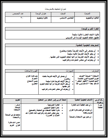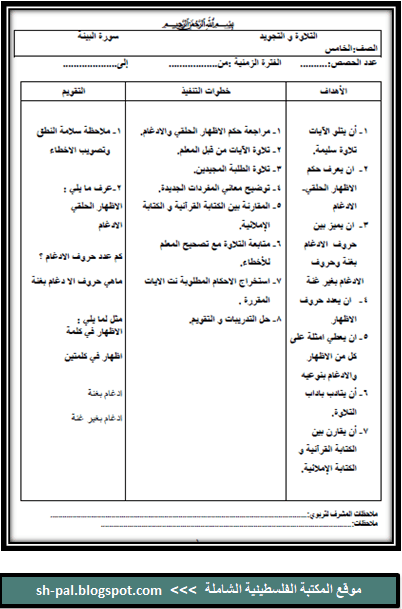 تحضير تلاوة وتجويد للصف الخامس الفصل الأول المكتبة الفلسطينية الشاملة