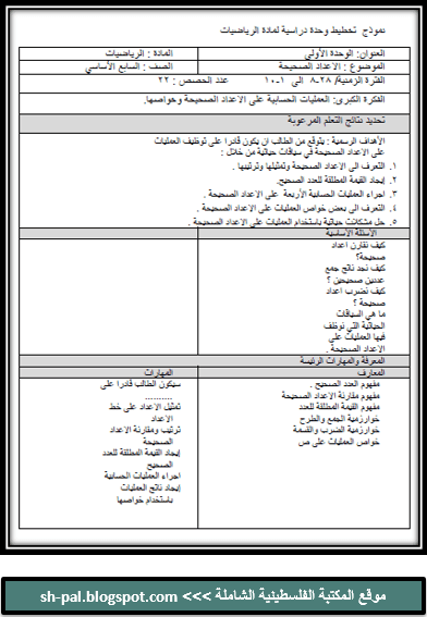 تحضير رياضيات للصف السابع الفصل الأول وفق النظام الجديد المكتبة الفلسطينية الشاملة